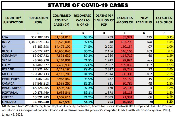 Here we provide a daily update of the data available for select countries and jurisdictions as of January 9, 2022, at 4:15 pm EST.