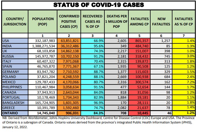 Here we provide a daily update of the data available for select countries and jurisdictions as of January 12, 2022, at 4:00 pm EST.