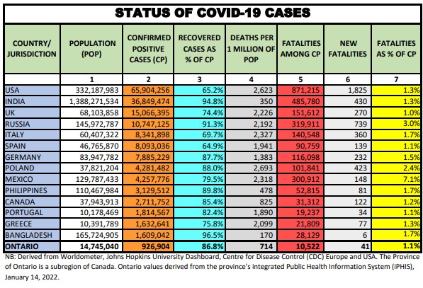 Here we provide a daily update of the data available for select countries and jurisdictions as of January 14, 2022, at 7:00 pm EST.