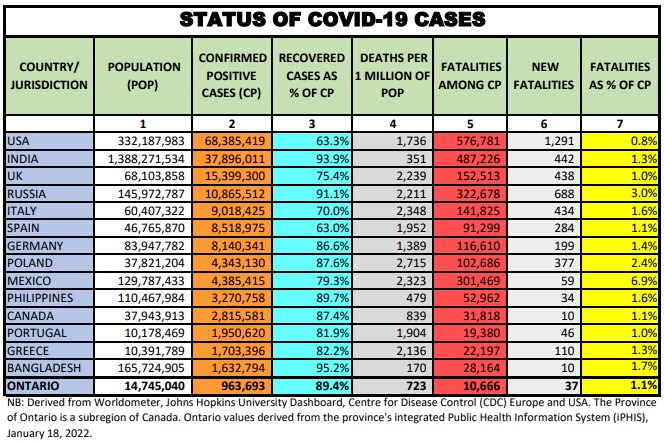 Here we provide a daily update of the data available for select countries and jurisdictions as of January 18, 2022, at 7:00 pm EST.