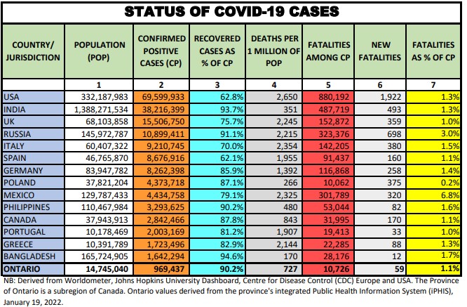 Here we provide a daily update of the data available for select countries and jurisdictions as of January 19, 2022, at 7:45 pm EST.