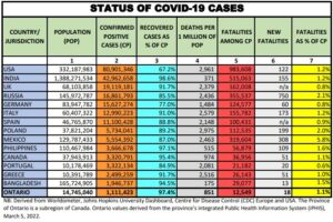 Status update of Covid-19 cases worldwide