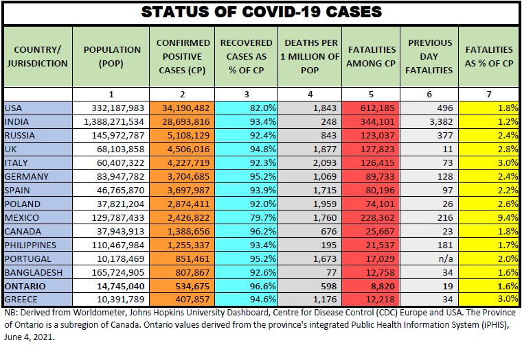 Here we provide a daily update of the data available for select countries and jurisdictions as of June 4, 2021 at 8:00pm EST.