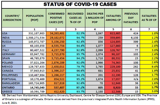 Here we provide a daily update of the data available for select countries and jurisdictions as of June 9, 2021 at 8:20pm EST.
