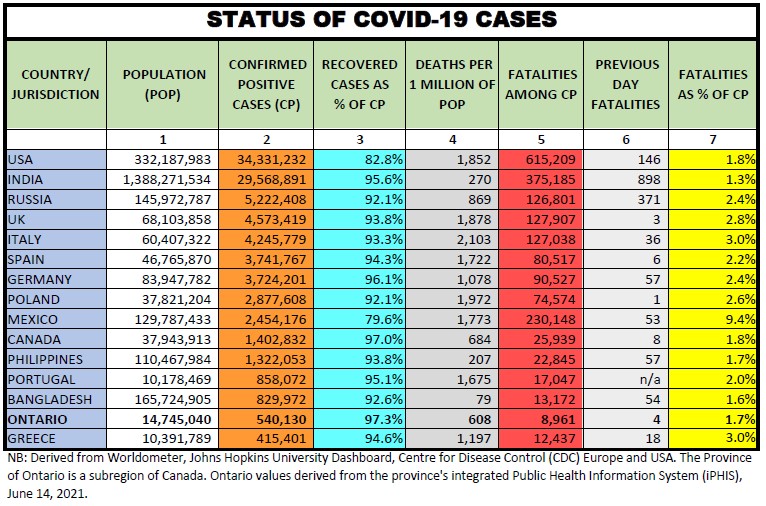 Here we provide a daily update of the data available for select countries and jurisdictions as of June 14, 2021 at 5:30pm EST.