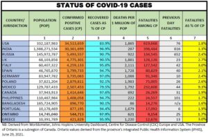 Here we provide a daily update of the data available for select countries and jurisdictions as of June 29, 2021 at 4:25pm EST.
