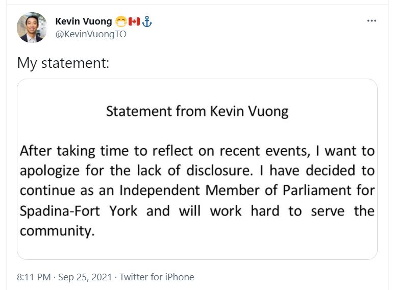 I don’t know the “real” Kevin Vuong. Apparently, neither did the Liberal Party that recruited him nor the Canadian reserves in which he served, nor did one of his former partners with whom he is embroiled in a civil suit. Apparently, the 18,991 Canadians who voted for him did not know him either.