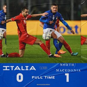PALERMO – L’Italia perde 0-1 la semifinale playoff contro la Macedonia del Nord e manca l’accesso ai Mondiali 2022, rimanendo clamorosamente fuori dalla massima competizione internazionale per la seconda edizione consecutiva. Gli azzurri di Mancini dominano per oltre 90’, sprecano moltissimo e vengono puniti al 92’ da un gran gol di Trajkovski. I macedoni si giocheranno ora un posto in Qatar nella finale contro il Portogallo…
