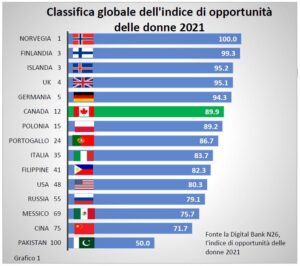 Gli impatti del Covid-19 potrebbero aver indotto una “recessione rosa” per le donne di tutto il mondo. Ciò potrebbe avere un impatto negativo sulla progressione dell’emancipazione economica delle donne e influire negativamente sulla posizione del Canada al 12° posto nella Classifica delle Opportunità Femminili del 2021…