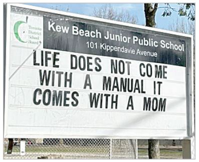 TORONTO – “La vita non arriva con un manuale. Arriva con una mamma”. Una frase semplice e per nulla banale che racchiude una grande verità voleva essere un augurio in vista della festa a lei dedicata ma questa scritta sulla bacheca della Kew Beach Junior Public School, ha invece scatenato polemiche a non finire. Una frase, a detta di Charlotte Dobo – madre di quattro bambini che non frequentano questa scuola – “dannosa” e “non inclusiva” al punto che ha pensato bene di postare la foto sui social media dove i commenti non si sono fatti attendere…