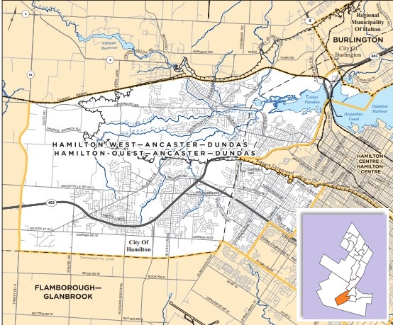 A fairly new district, Hamilton West-Ancaster-Dundas was created in 2015 and situated west of “the Mountain”. The constituency covers a span of 100 square km and encompasses the communities of Ancaster and Dundas.