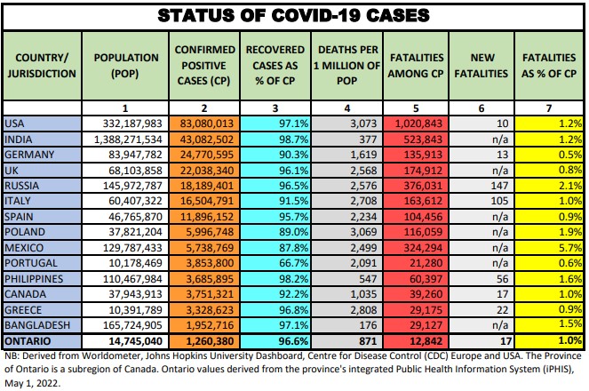 Here we provide a daily update of the data available for select countries and jurisdictions as of May 5, 2022, at 4:20pm EST.