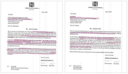 Heinen Hutchison LLP saw the entire process as “Kafkaesque”, “politically motivated” and with a “preordained result”. They served a second letter, a Litigation Hold, to Ian Brodie, Chair of the leadership Election Organizing Committee, advising him and anyone else associated with the decision to prepare and preserve all communications in any platform they may have been a party to in respect of Mr. Brown.