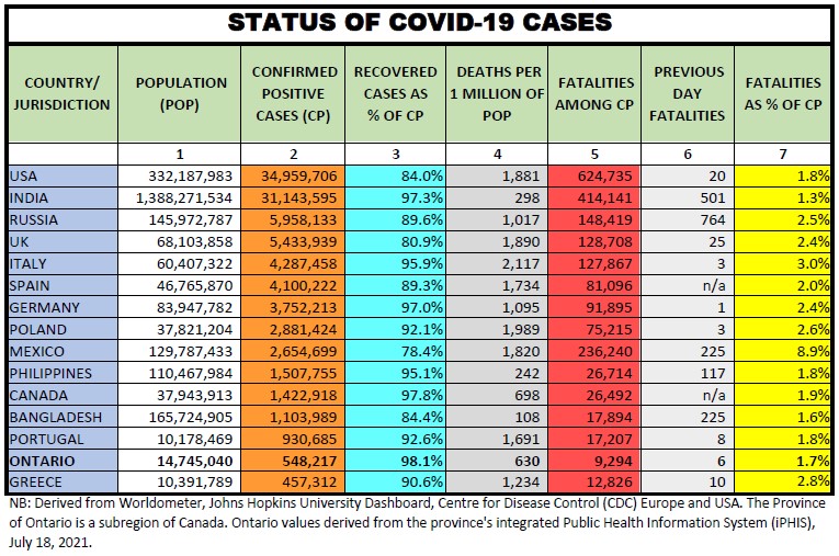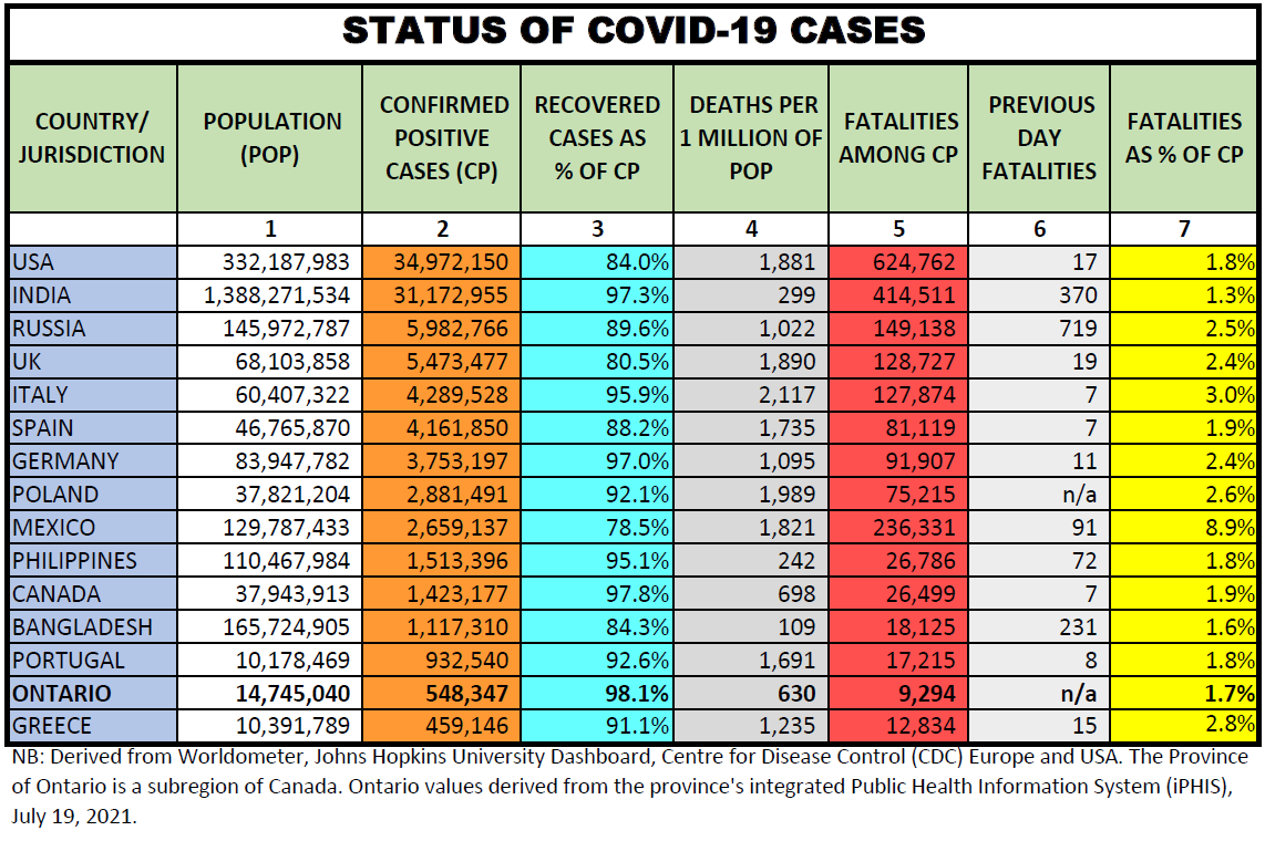 Here we provide a daily update of the data available for select countries and jurisdictions as of July 20, 2021, at 5:00pm EST.
