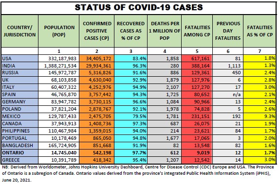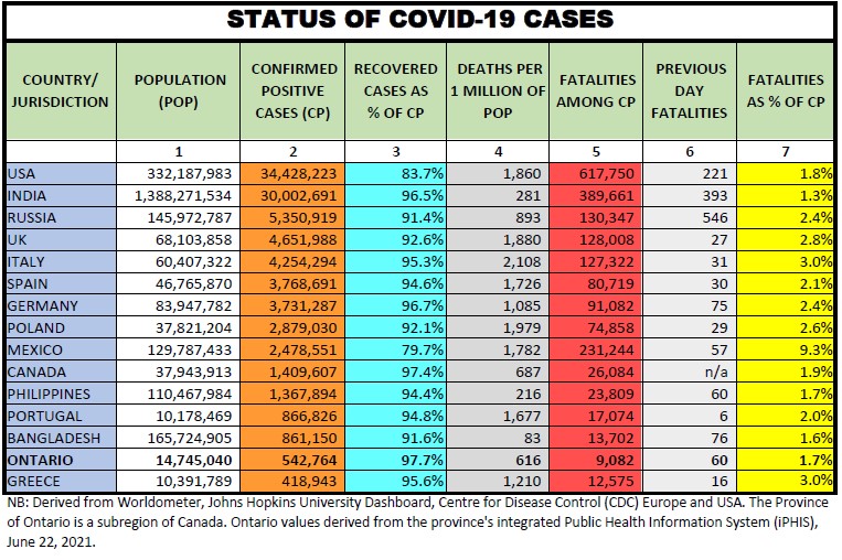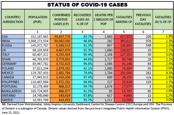 Here we provide a daily update of the data available for select countries and jurisdictions as of June 23, 2021 at 4:00pm EST.