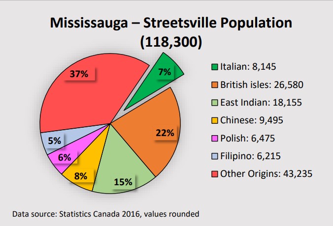 The district is home to 118,300 residents, of which a considerable segment are immigrants. Some of the largest populations were born in India, Pakistan and the Philippines. In terms of those who originate from Italy, 8,145 constituents self-identify as of Italian origin, as per the 2016 Census. That represents 7% of the population.