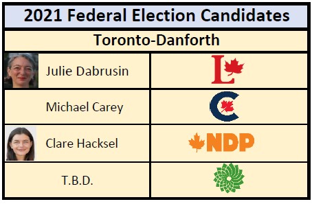 Their candidate, Clare Hacksel, appears poised to win back the seat from the incumbent party. Michael Carey is the Conservative party candidate. No candidates have been named for the Greens nor the People’s Party of Canada.