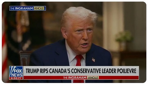 In the pic above, Donald Trump during the interview on Fox News: the video was also published by Pierre Poilievre on his Twitter – X profile (@PierrePoilievre)