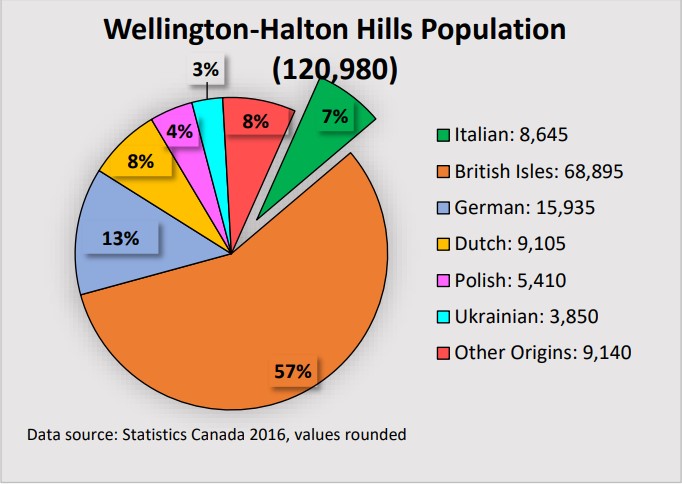 Of the more than 97,300 who emigrate from Europe, Italians represent one of the largest cultural groups in the region. According to the 2016 Census, 8,645 constituents self-identify as Italian Canadian. They represent about 7% of the district’s population.