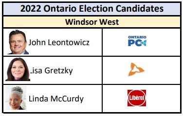 Windsor West provincial electoral district is situated at the Southwestern tip of Ontario. It covers an area of 82 square km and encompasses the western part of the city of Windsor. The Detroit river, which is divided by the Canada-US boundary, edges along the city’s northern shore.