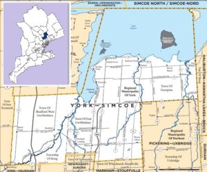 Created in 1999, the constituency of York-Simcoe is situated on the south shore of Lake Simcoe. It covers part of the Regional Municipality of York and encompasses the towns of Georgina, Bradford West Gwillimbury, East Gwillimbury and part of the Township of King. The riding also includes part of the County of Simcoe and the Indigenous community of the Chippewas of Georgina Island First Nations Indian Reserve.